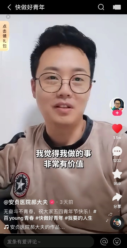 但行好事,莫問前程。青年的價值不僅在于實現自我,更在于奉獻社會。青年節前夕,一直致力于醫學知識科普的安貞醫院郝大夫也向網友送出祝福,在他看來,即使短視頻科普會占據自己的休息時間,但讓老百姓足不出戶在床頭邊學習健康知識,仍是一件非常有價值的事。