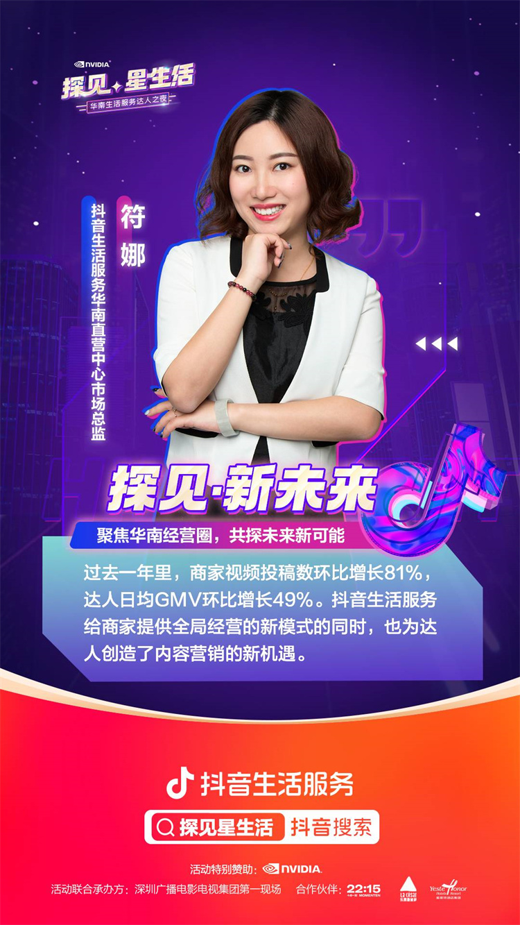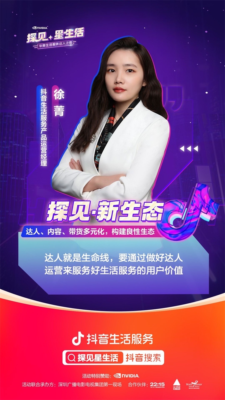5月28日,由抖音生活服務(wù)華南直營(yíng)中心主辦,深圳廣播電影電視集團(tuán)第一現(xiàn)場(chǎng)聯(lián)合承辦的“探見星生活”華南生活服務(wù)達(dá)人之夜精彩閉幕。抖音生活服務(wù)市場(chǎng)總監(jiān)趙帥、抖音生活服務(wù)產(chǎn)品運(yùn)營(yíng)經(jīng)理徐菁、抖音生活服務(wù)華南直營(yíng)中心市場(chǎng)總監(jiān)符娜以及頭部達(dá)人創(chuàng)作者“特別烏啦啦”等嘉賓亮相大會(huì)現(xiàn)場(chǎng)。