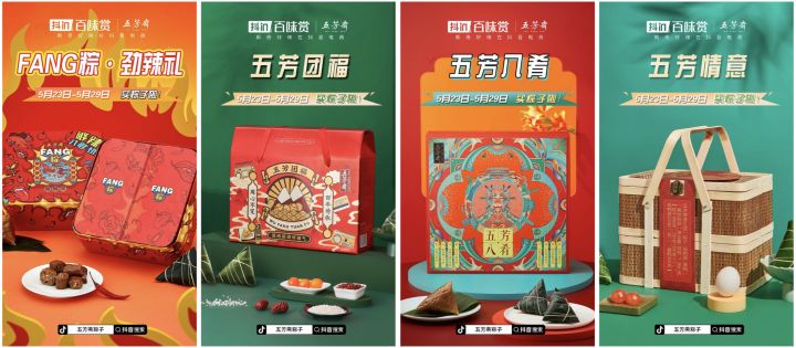 在和老字號品牌五芳齋的此次合作中,抖in百味賞深挖五芳齋品牌創始的“根”,以“創造粽子新奇觀”為活動主題,通過FANG粽·勁辣禮、五芳團福、五芳八肴、五芳情意等系列禮盒的推出,將互聯網新話術與老品牌的傳承之念做一個有機地嫁接或者融合,看似新奇的思路賦予了品牌與產品新的含義,由此展開一個老品牌在新市場上通過營銷創新實現增量新引擎的模范案例。