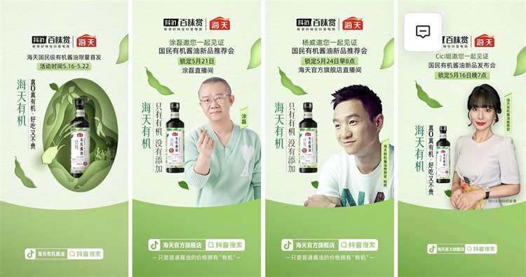 中華老字號品牌海天則將產品生產的“幕后”過程搬到了“臺前”,向觀眾進行展示:海天邀請抖音上的知名達人cici888成為了自己的“新品開價官”,并邀請其參觀工廠,與海天電商經理一起為有機新品開價,用全新的第三方視角,向觀眾展示自己的“有機產品力”。以這樣一場極“接地氣”的新品發布會為起點,海天有機新品最終累計收獲超1億人氣。