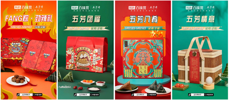 五芳齋別具匠心的結合端午時點,不僅與抖in百味賞聯合開啟#這粽子第一次見 話題,鼓勵用戶分享各種口味的粽子與花式吃法,引發抖音站內對于粽子的關注和討論。五芳齋還接連推出數款禮盒,如限量版“FANG粽·勁辣禮”和“林述巍聯名款五芳八肴禮盒”,抖音用戶定制款“五芳團福禮盒”等,成功打造五芳齋端午“網紅粽”矩陣。