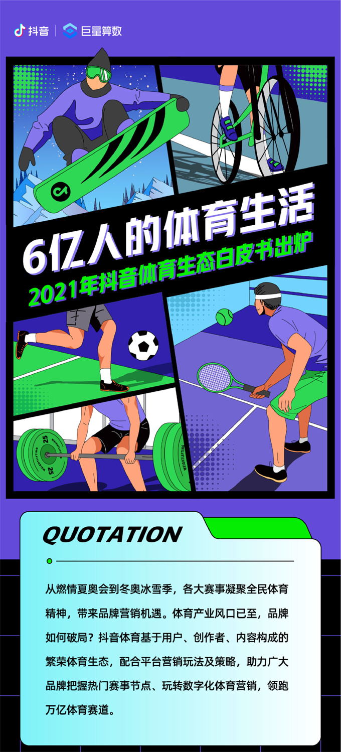 隨著抖音體育生態(tài)的繁榮生長(zhǎng),6億用戶都在這里找到了自己的“體育主場(chǎng)”。抖音用戶的體育熱情日益高漲,也為體育營(yíng)銷(xiāo)創(chuàng)造了全新機(jī)遇。