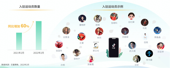 除參賽運(yùn)動(dòng)員外,張怡寧、郭晶晶等退役運(yùn)動(dòng)員也在抖音活躍起來(lái),以此作為與大眾溝通的渠道。2022年2月對(duì)比2021年2月,職業(yè)運(yùn)動(dòng)員入駐數(shù)增加60%