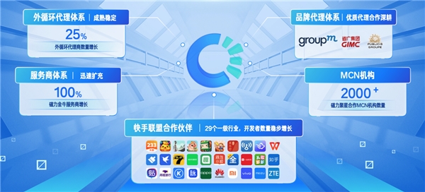 在亮眼的數據背后,是持續壯大的新市井商業合作伙伴陣營。據馬宏彬介紹,相較于去年上半年,快手外循環代理體系日趨成熟穩定,代理商數量同比增長25%;磁力金牛服務商體系迅速擴充,服務商數量同比增長100%;截至目前,磁力聚星合作MCN機構超2000家;與省廣集團、群邑等品牌代理體系中的優質代理合作愈加深入;快手聯盟覆蓋的行業、開發者數量穩步增長。
