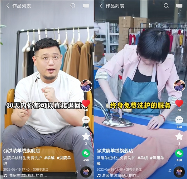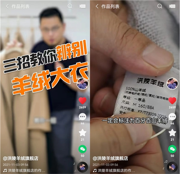 好的內(nèi)容是消費(fèi)者了解品牌的窗口。為了吸引消費(fèi)者關(guān)注、強(qiáng)化品牌認(rèn)知,洪陵羊絨結(jié)合羊絨品類(lèi)特性,通過(guò)拍攝羊絨科普、工廠溯源等主題視頻,讓消費(fèi)者“先了解,后購(gòu)買(mǎi)”。