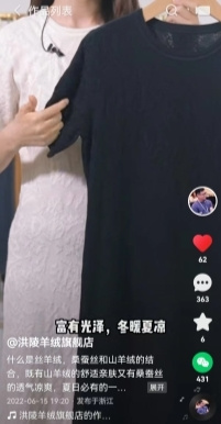 當(dāng)下,羊絨服飾進(jìn)入反季,考慮到客戶(hù)在夏季的著裝痛點(diǎn),洪陵羊絨創(chuàng)新推出了主打清涼感的絲羊絨系列,融合山羊絨的舒適親膚與桑蠶絲的透氣涼爽,并在視頻中以檢測(cè)報(bào)告的形式展示清涼程度,讓客戶(hù)清晰地感知產(chǎn)品品質(zhì)。