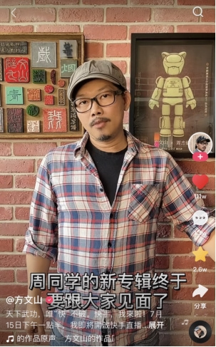 在7月15日下午1點半,入駐快手不到一天的周杰倫御用作詞人方文山,也在快手開啟直播首秀,調侃就是因為自己寫詞太慢才拖累了專輯進度,背起了新專輯姍姍來遲的“黑鍋”,并主動為杰倫開脫道:“其實這六年寫了很多首歌,并不是什么都沒做”。有觀看直播的網友和粉絲表示:“專輯這么晚怪誰我不知道,但方文山是真的愛周杰倫”。直播中方文山還透露了除了收錄在專輯中的歌曲,周杰倫還為他人寫了三首歌,但尚未發表。本意是繼續為周董“偷懶”開脫,但粉絲卻樂開了花,畢竟又有三首新作品可以期待了,雖然不是周董自己唱,四舍五入也算是周杰倫新歌了,有網友調侃:“今年真的是杰迷過年,2022年屬于是『周年慶』了”。