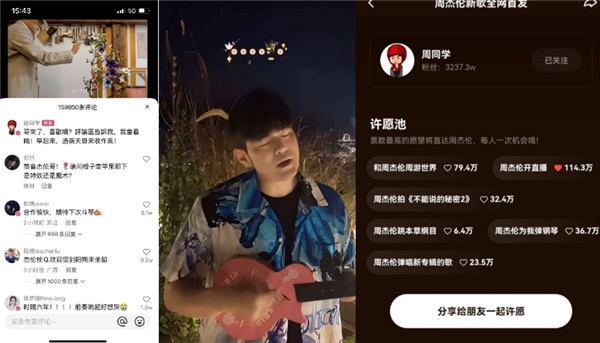 寵粉的周杰倫,在其快手賬號(hào)“周同學(xué)”發(fā)布新專輯先行曲MV后,在快手與粉絲高頻互動(dòng),無(wú)論是親自伴奏、邀請(qǐng)粉絲同框合唱,還是在快手完成新專輯首唱,都掀起一波波流量狂潮。