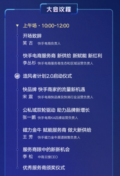 此外,下午場(chǎng)還有快品牌商家代表及新銳服務(wù)商代表主題演講,而圓桌論壇壁虎看看創(chuàng)始人胡文書、快手電商服務(wù)商華東華西區(qū)域負(fù)責(zé)人余國(guó)亮及諸多高級(jí)操盤手和服務(wù)商代表,共同為大家解讀操盤手運(yùn)營(yíng)技巧,一起共話服務(wù)商生態(tài)未來。