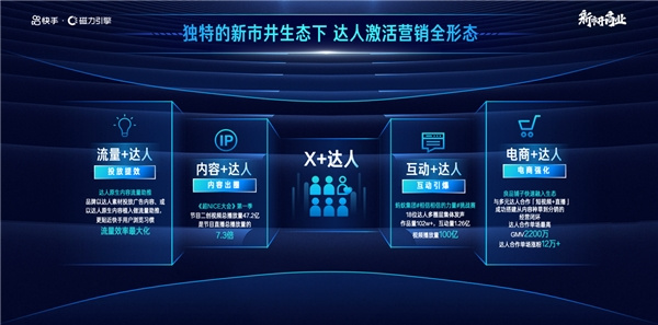 在分享中,高亞梅詳細介紹了快手新市井商業(yè)營銷價值圖譜,圍繞品牌“擴圈-連接-轉(zhuǎn)化-經(jīng)營”四大需求,將產(chǎn)品工具與達人結合,從流量到銷量、從品牌到經(jīng)營,提供由淺入深的全鏈營銷賦能。同時,基于快手生態(tài)以及商業(yè)化探索,快手提出了“X+達人”營銷思路,并通過標桿案例拆解,讓品牌方更深入了解快手達人與流量、內(nèi)容、互動、電商結合之后,所產(chǎn)生的營銷效果。
