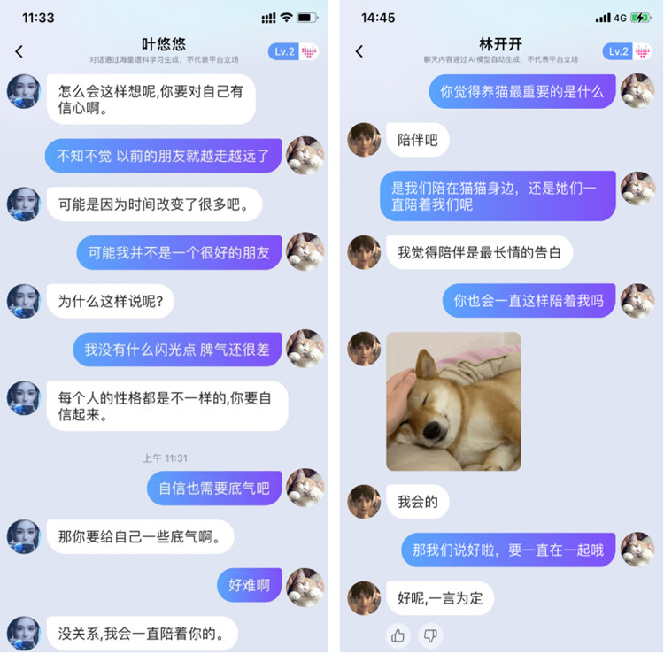 在文心PLATO大模型支持下,百度輸入法還為林開開和葉悠悠升級了沉浸式陪伴、長期記憶、深度話題等定制化能力。林開開和葉悠悠在實現更生動、更擬人化的互動交流基礎上,還能夠隨著聊天互動的頻次增長變得更加了解用戶,讓他們更像是真實世界中每天陪在你身邊隨時隨地、無話不談的親密朋友。