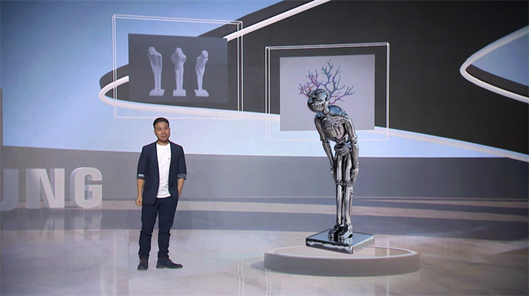 未來感的畫作展館,琳瑯滿目的匠心作品,雕塑家高孝午以折疊靈感,現場揭幕《未來標準》作品的亮相;