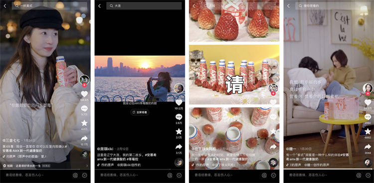一直善于借力內(nèi)容激發(fā)營銷勢能的伊利,此前便打造了眾多經(jīng)典案例,比如中秋“AI的禮物挑戰(zhàn)”來喚醒人們“愛在日常”,冬奧期間上線態(tài)度短片、品牌宣傳片等點燃大眾夢想……此次,結(jié)合平臺資源和數(shù)據(jù)洞察,伊利安慕希AMX丹東草莓酸奶充分挖掘產(chǎn)品優(yōu)勢特性與人群偏好,針對不同營銷階段制定精細化的達人及內(nèi)容營銷策略,通過高質(zhì)量的內(nèi)容傳播,整體實現(xiàn)了曝光超20億,點贊量近4000萬的突破性效果,令新品迅速火爆。同時,源于有效的達人選取與內(nèi)容創(chuàng)意的結(jié)合,丹東草莓酸奶的火爆周期得到明顯延長,為品牌與丹東地區(qū)經(jīng)濟發(fā)展都帶來了可持續(xù)的增長點。