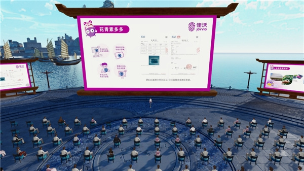 還通過三維技術將秘魯藍莓推薦會搬進元宇宙,通過佳沃品牌推薦官的宣講和會場內50多張展板的呈現,從全產業鏈的角度向玩家展現出佳沃秘魯藍莓不斷升級的甄選品質。元宇宙內還設置了藍莓知識問答、彩蛋收集等趣味游戲,讓玩家欣賞元宇宙風光的同時,沉浸式體會花青素對眼睛的益處,將“用眼過多,吃佳沃藍莓”的品牌理念根植進消費者心中。
