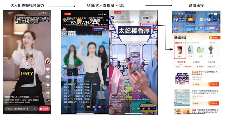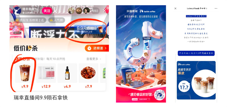 其中抖音商城聯(lián)合瑞幸咖啡推出的“9.9元秒殺拿鐵”活動,通過站內(nèi)四大秒殺福利官主持人舒暢、巴圖博谷等達人引流,使用戶進入秒殺專區(qū)頻道,助力商家活動產(chǎn)品銷售轉(zhuǎn)化,瑞幸咖啡單品秒殺突破4萬單。