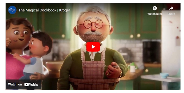 10月28日,美國超市運營商Kroger(克羅格)與代理機構DDB(New York)共同發布了一支溫馨感人的CG短片《The Magical Cookbook(神奇的食譜)》,以已故妻子留下的食譜為中心,講述了一個寡居祖父的愛與回憶,品牌希望借這種與親人創造的快樂和記憶,來與消費者建立起深層的情感聯系。