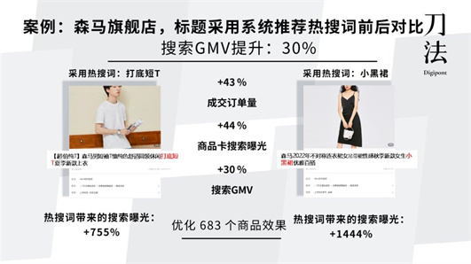 抖音電商搜索負責人姜志分享了一個關于森馬是如何通過調整標題,輕松實現搜索GMV 提升 30% 的案例來說明標題優化的簡單和有效。