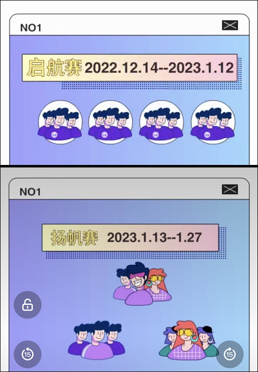 活動設(shè)置兩個賽段,首先是為期30天(2022.12.14-2023.1.12)的啟航賽。之后該賽段積分倒序排名前150名公會,進(jìn)入到為期15天(2023.1.12-2023.1.27)的揚帆賽。