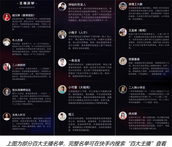本次躋身2022快手百大主播之列的,有來自不同背景和領域方向的主播,這充分印證了快手直播生態的多元、包容與創新。