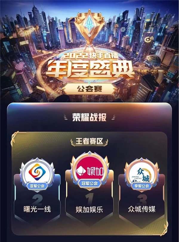 比如,在2021年“藍(lán)海計(jì)劃-快手城市合伙公會招募活動”中,眾城傳媒從近千家公會中脫穎而出,贏得了快手“藍(lán)海計(jì)劃”城市合伙公會的名額。在2021快手直播年度盛典公會賽中,其又獲得星耀賽區(qū)亞軍。每一次的參與,快手都會實(shí)打?qū)嵉亟o到公會流量扶持、收益加成、資源獎勵以及影響力宣傳。