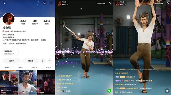 除了舞獅外,咸魚強更展示了流行街舞等五花八門的才藝,還不時化身搞笑段子手,呈現出一個與大熒幕里不同的年輕潮流形象,營造反差感,拉近了與用戶之間的距離。