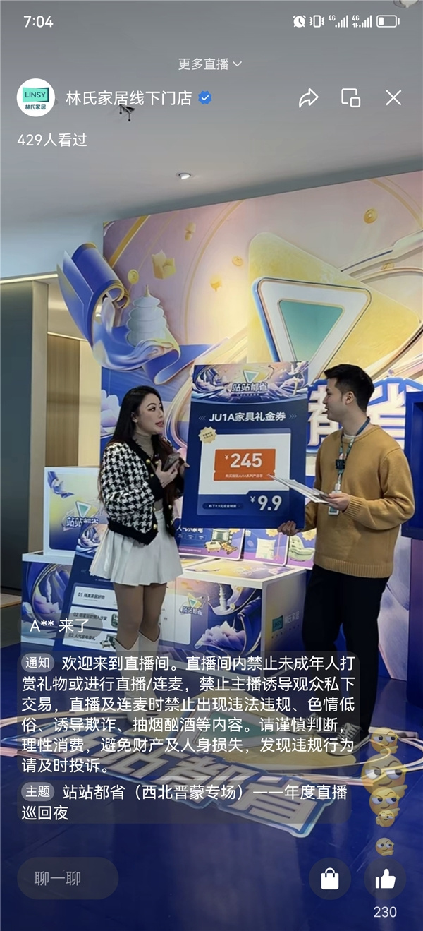 然而,為商戶賦能,又不止于點火,更在于薪火相傳,點亮并照亮更多的“家居行業的人”。對此,為商戶賦能最重要一步,是林氏家居的全方位“扶持”。例如,薪火行動周期與多個年底節日大促節點重疊,為終端經銷門店營銷加碼;此外由林氏總部牽頭重新激活沉睡用戶價值,幫助經銷商解鎖增長引擎,在存量用戶中尋找增量;林氏首推全國巡回直播專場,引爆強大終端需求。 其中,在12月9日,林氏家居“雙12年終秒殺夜萬元紅包狂歡送”專場直播火熱上線,3小時直播場觀高達到7萬余人次,總互動數達到14.05萬,為薪火行動打響第一炮。據林氏家居相關負責人透露,林氏首次發起全國巡回直播,從12月17日-12月31日,一共13場次,由林氏家居總部進行統籌執行,覆蓋東北、華東、華中、華北、西北、華南、西南等28個省份及地區,超過800家門店參與。