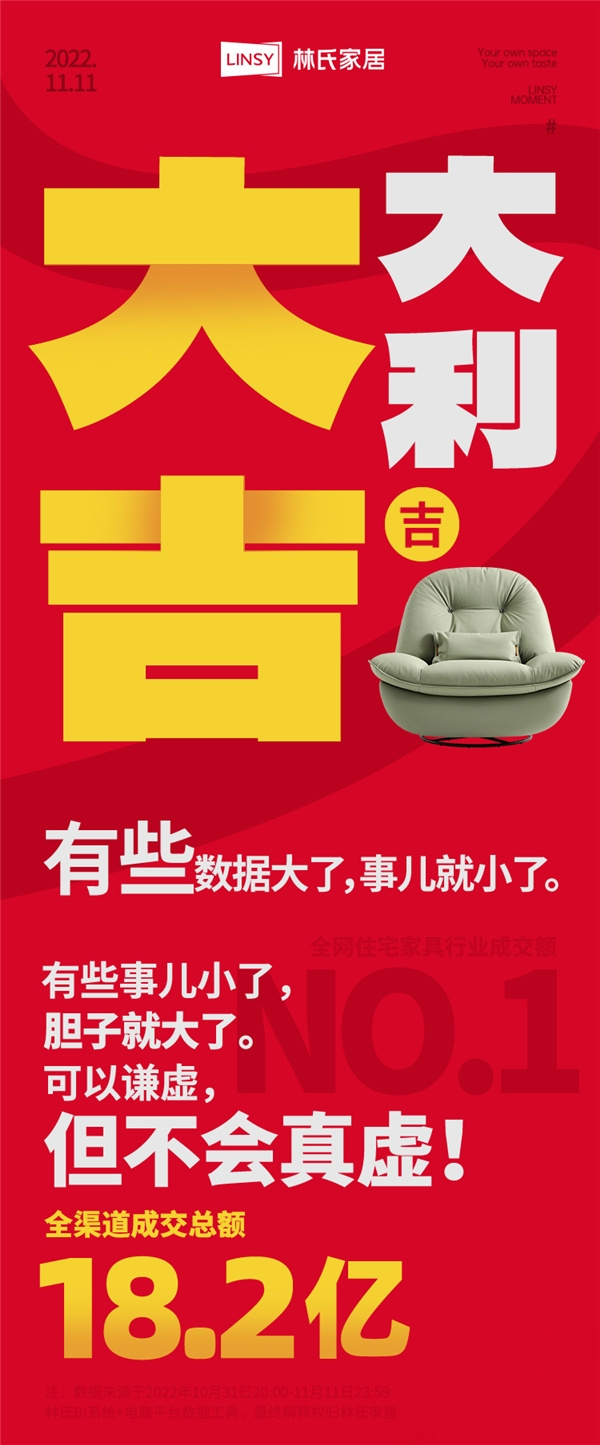 所以,盡管“雙11”已歷經了14年的考驗,林氏家居在“雙11”期間的總成交額達到18.2億元,再次穩居全網住宅家具行業成交額TOP1。而林氏家居連續多年蟬聯天貓“雙11”住宅家具品類的第一名的成績,并不是一次次的營銷手段和爆款堆砌所能夠達成的成就,而是品牌內核的硬實力所帶來的必然。