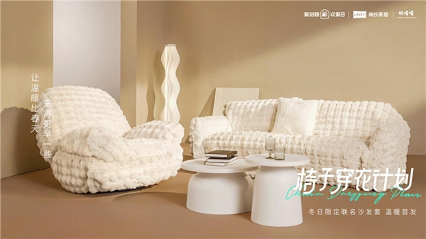 林氏家居深諳其道,與聚劃算歡聚日攜手知名藝術家@偷閑一刀的網紅IP“奶噗噗”,聯名首發了限定聯名款「怎么坐都很暖」、「怎么躺都很暖」毛絨沙發套。這款沙發套順滑蓬松毛絨質感,無論從視覺上、觸覺上都讓身心充滿愉悅,并且方便拆卸清潔,完美契合林氏家居“怎么坐都可椅”和“好想躺沙發”兩款戰略產品,讓消費者一整個冬天都能夠溫暖、舒適坐臥。當下,林氏家居選擇在寒冷冬日推出這兩款沙發套,正是基于對年輕人深入的居家洞察,瞄準了他們對溫暖與治愈的喜好與需求。