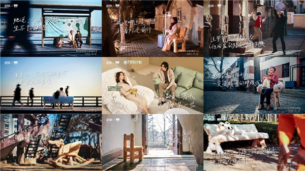 為加深用戶的情感認同,品牌在產品的基礎上還推出了線下暖心創意營銷事件——#椅子穿衣計劃#,走進城市街頭小巷,給公園長凳、公交站長椅、街頭凳子等穿上毛茸茸的“衣服”,讓“冷板凳”不再冰冷,傳遞陣陣暖意,在寒風肆虐的冬天,大家在戶外也能坐在“暖板凳”上。這一事件,讓柔軟、溫暖變得看得見、摸得著,打造出了具體化的“治愈系”氛圍,讓冬日氣息變得更加溫柔,也成功傳遞出“生活終將被美好治愈”的品牌理念。