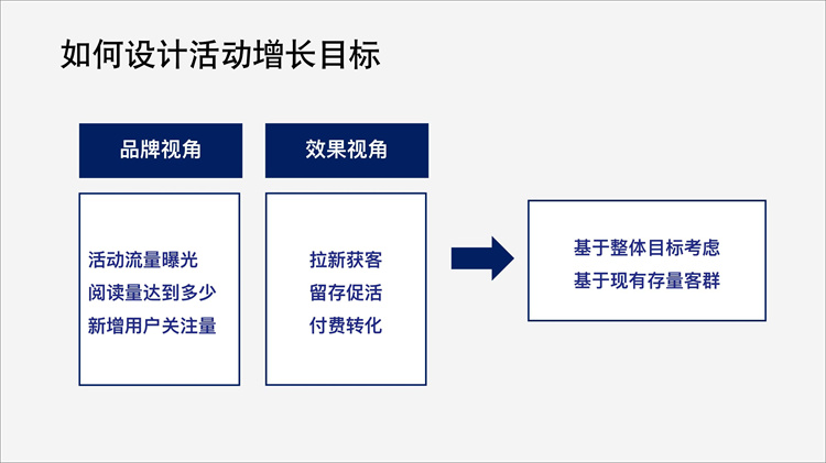 這些活動增長目標的設計也是需要結合企業自身實際情況來考慮。一個是基于整體目標考慮,另外就是基于現有存量客群。