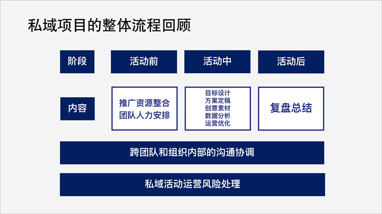項目的整體流程回顧可以從活動前、活動中還有活動結束后的復盤思考來做梳理。