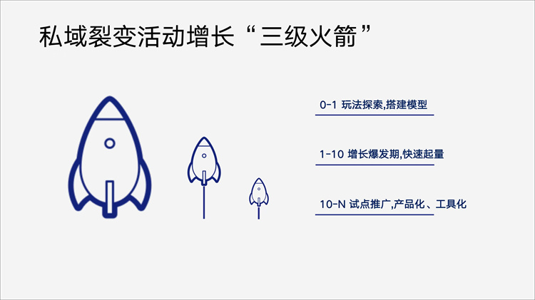 這個偏向C端的用戶增長項目,在較長的時間內,不僅僅是對活動本身的思考,還有對增長的深度探索,對項目有了更加體系化的理解。從裂變增長項目中,我對裂變增長形成了“三級火箭”思考。分別是“0-1”階段、“1-10”階段、“10-N”階段思考。