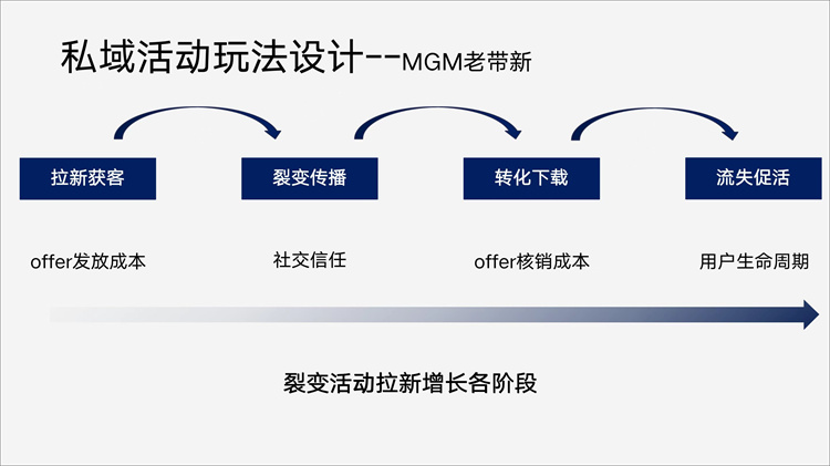 相比同步在跑的其他活動類型相比,裂變活動價值比較的突出。比如千元戶指標達到10%以上,而在過往數據里面,這種高價值的輸出算是比較少見的。也驗證了一件事情,很多大的平臺,本身擁有的存量價值如果做深入挖掘確實是能夠帶來相當驚人的力量。就拿我剛開始接觸互聯網時候做搜索引擎營銷,單個金融APP的拉新成本考核是50元以內,這是借助媒體平臺的增量做增長。而裂變增長項目借助的是平臺的存量價值,通過存量帶增長,也就是當下在說的私域運營。