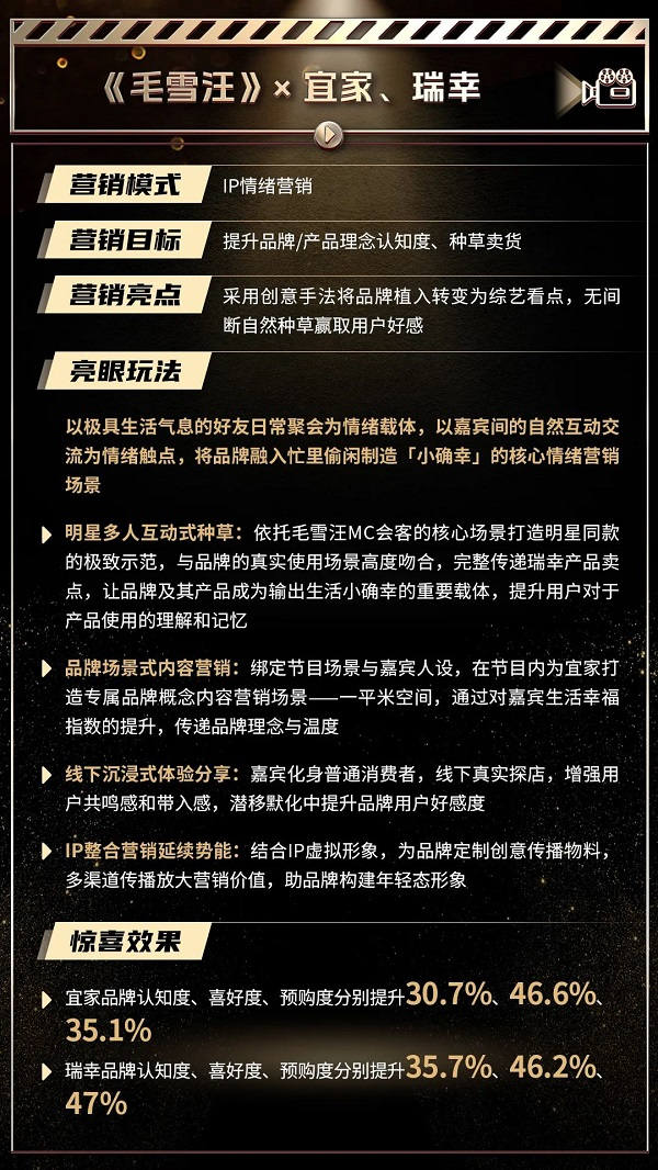 如今衡量內容的“爆款”價值時,贊助商數量、營銷玩法等商業維度上的表現已是不容忽略的考量要素。在當下的營銷大環境下,一味追求單向大曝光、強勢輸出產品賣點的營銷方式在打動消費者內心層面處于劣勢,品牌、市場需要的是貼近用戶需求、強調情感共振、覆蓋全渠道全周期、品牌和用戶“雙向奔赴”型的內容營銷。