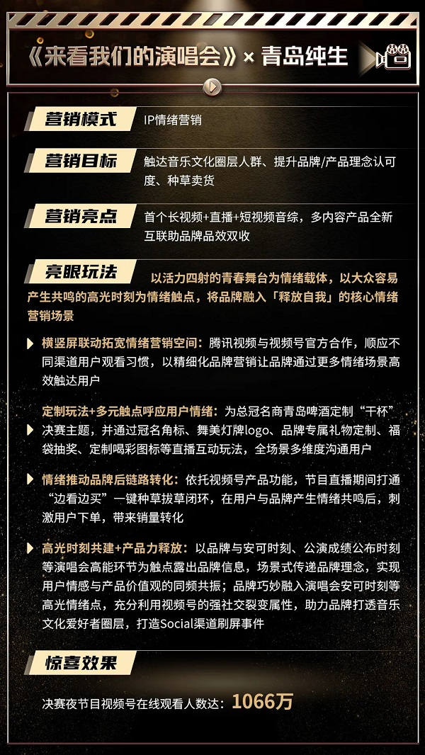 順應大眾渴望線下舞臺的主流情緒,《來看我們的演唱會》與青島純生以長短視頻聯動、主題定制、玩法創新助推綜藝營銷走向2.0升級。