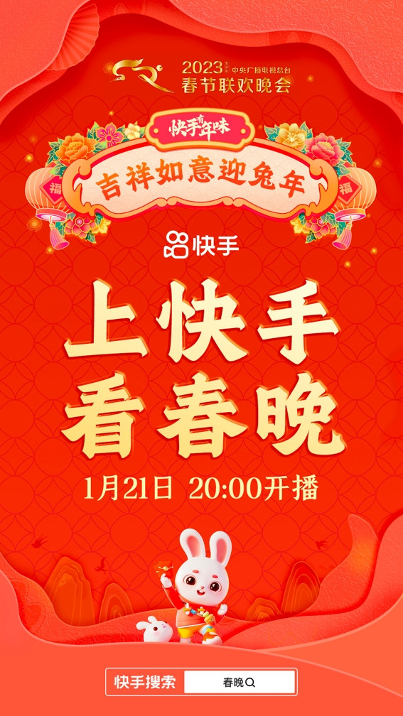 上快手,搜索「春晚」,和家人一起看春晚,吉祥如意迎兔年!