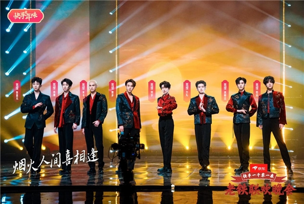 除了溫暖回憶殺,快手“鐵晚”上還有各種意想不到的跨界組合,碰撞出了奇妙的火花。來自快手的普通電焊工組成的限定版樂隊,與意氣風發的少年組合INTO1帶來國風唱跳版的《天涯》。舞臺上,一邊是青春酷颯的英氣少年,一邊是拿著電火花吉他、電火花鼓、二胡、古箏等碰撞出絢麗火花的樂隊,在電光火石間唱響江湖烈烈,讓人看得熱血沸騰。