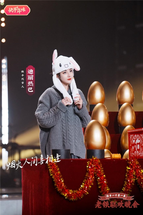 說到直播互動,此次快手“鐵晚”同樣是十分用心,不僅直播全程都有紅包快幣等掛件,還邀請迪麗熱巴、楊冪送出潮玩數碼大禮包、冰箱彩電大禮包、999克純金碗等驚喜福利。其中,迪麗熱巴在砸金蛋環節挑戰萌萌的兔子舞,認真的樣子十分可愛,通過游戲互動的形式也讓直播間的老鐵更有參與感。