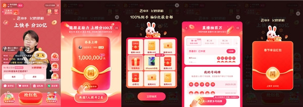 快手“家年華”活動開啟后,用戶在快手首頁點擊“紅包”標簽,進入春節直播間,便有紅包好禮送不停。