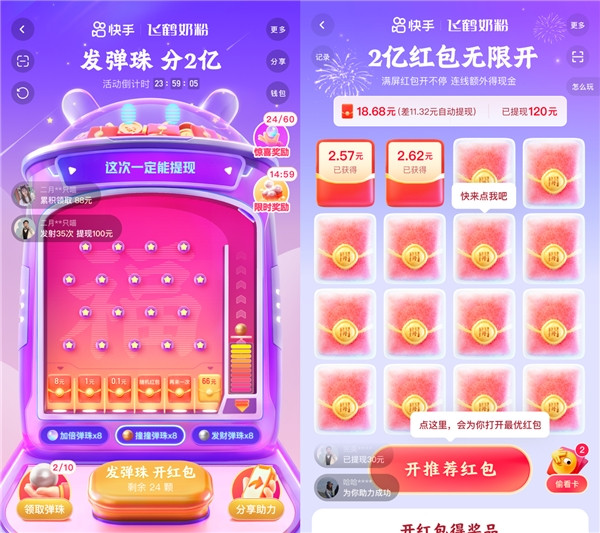 在直播間互動的同時,用戶也可參與2億紅包無限開,滿屏紅包開不停,拆開就能領,開完的紅包可連成線還有額外連線獎勵,開紅包越多、連線越多,則獎勵越多,紅包累積30元即可提現,快人一步搶先開完還可得“早鳥”紅包,紅包加碼,好運翻倍。