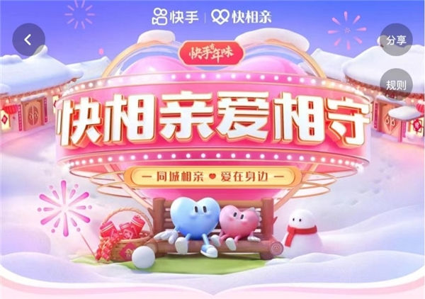 據(jù)悉,滿足用戶情感需求的“快相親,愛相守”同城相親活動,屬于快手2023年春節(jié)系列活動之一。今年的快手春節(jié)活動以“快手有年味”為主題,從20億紅包互動、廟會里的中國年、看大片過大年、新春K歌大會、新春招工會等多個維度發(fā)力,全景式呈現(xiàn)精彩新年瞬間,讓用戶們“玩在快手”“逛在快手”“樂在快手”“聚在快手”“暖在快手”。更多年味場景和春節(jié)福利,正在等待大家解鎖,千萬不要錯過!