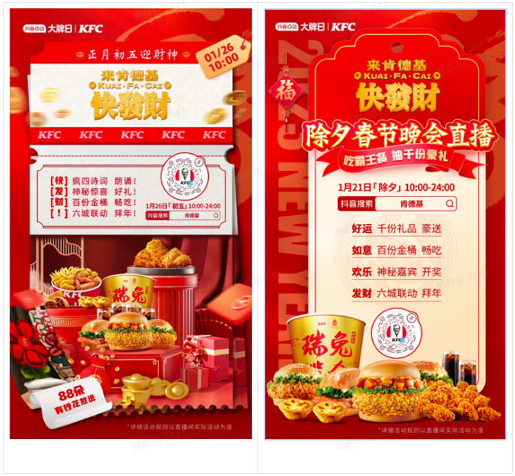 在今年的新春營銷季,「抖音心動大牌日」聯合IP肯德基推出活動“肯德基新春大聯歡”,在抖音平臺,肯德基聯動眾多明星達人,為用戶和消費者帶來美味又有趣的新春大金桶。不斷更新、豐富的產品組合不僅有超高性價比,也希望給用戶帶來有趣的用餐體驗。