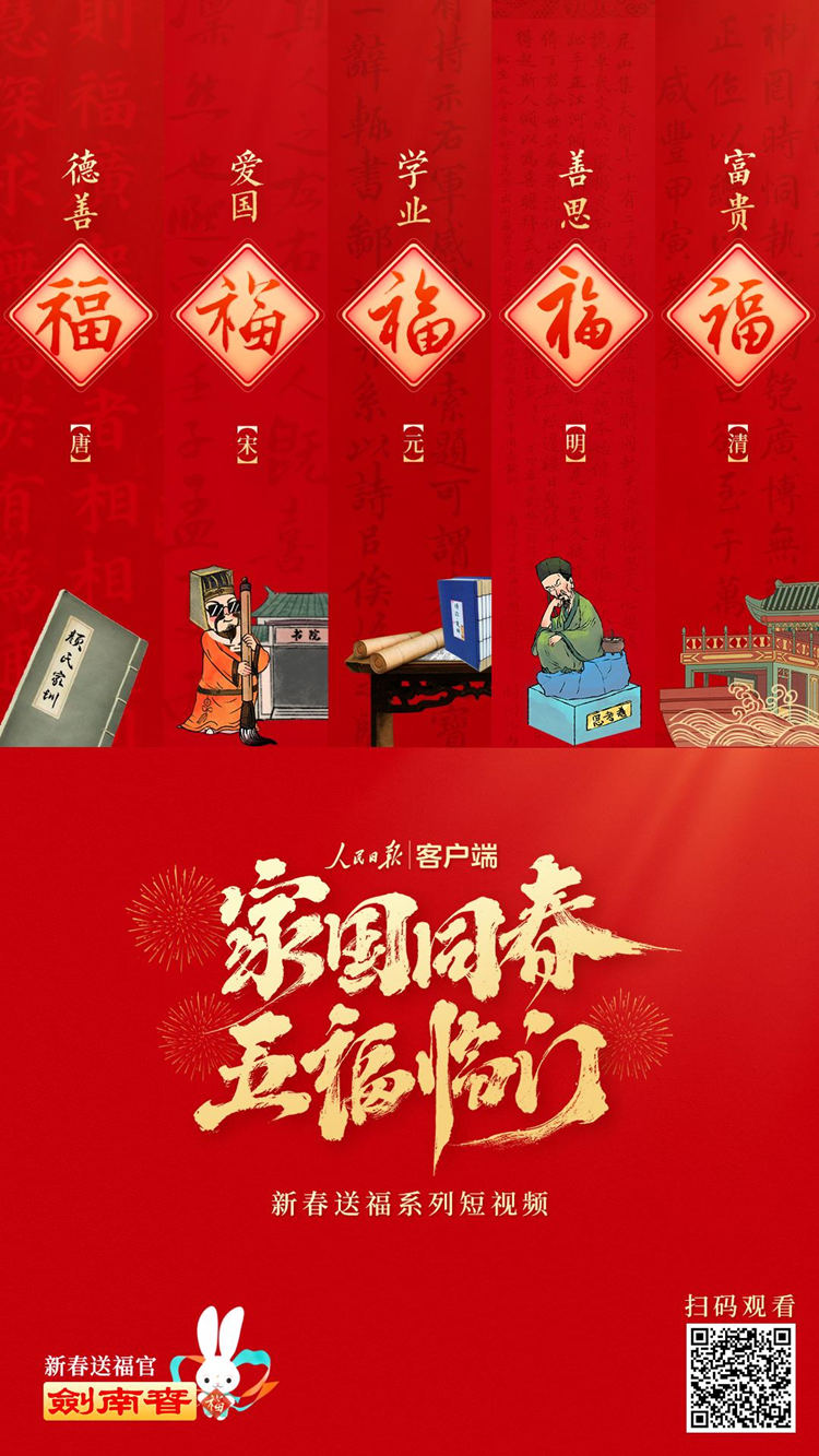 癸卯兔年新春佳節期間,劍南春挖掘五福內涵及自身深厚的歷史文化底蘊,將唐宋元明清五個朝代的五位大家書寫的“福”字的內涵,結合現代的福文化精神,向全國人民送去新年祝福,傳遞出“家國同春 五福臨門”的美好祝愿。串聯古今文化,連接五個維度幸福期盼,劍南春的走心祝福引發大眾共鳴,傳遞出濃濃的家國情懷!