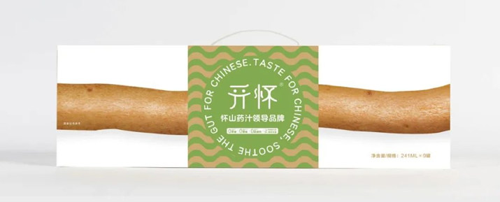 ■一根山藥是原有包裝設計的靈魂,優點予以傳承,但懷山藥“懷”的感覺需要設計出來。開懷山藥汁采用的是道地懷山藥,原有包裝的山藥是直的,沒有展現懷山藥“懷”的感覺。