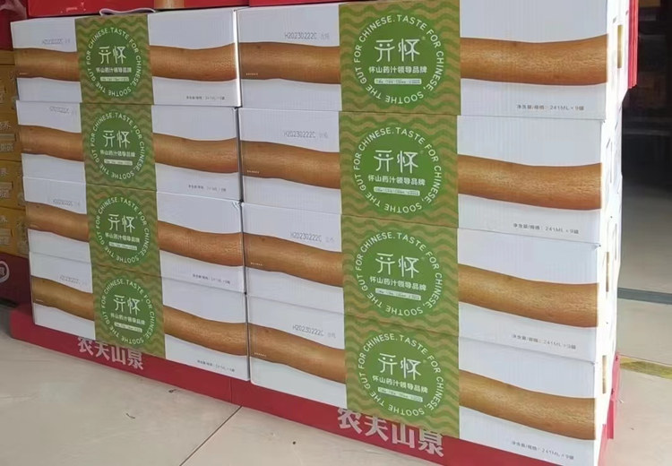 ■能夠動銷的產品包裝,開懷山藥汁在煙酒店展陳中,一根山藥連接成超長山藥,顧客一眼就知道是山藥產品