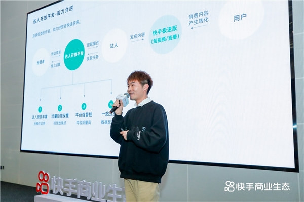 “各類創作者,是連接商家和用戶的紐帶?!笨焓稚虡I生態中心達人開放平臺負責人蔣超表示,在內容平臺,創作者深知用戶愛看什么,擅長通過內容創作進行種草。所以,如何高效找到創作者并獲得精準流量,對于在快手做生意的商家尤為重要。達人開放平臺正是連接經營者和達人的一站式撮合平臺,經營者通過平臺投放推廣任務,平臺撮合達人進行接單,達人則通過拍攝短視頻或者直播的方式,為經營者實現拉新獲客。