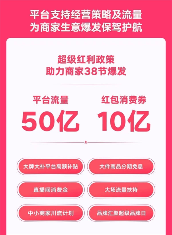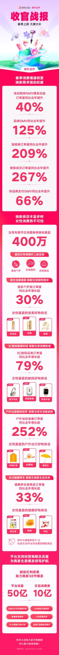 今年38節期間,快手電商拿出50億流量和10億消費券助力商家生意爆發,同時為用戶提供更多樣的消費補貼。