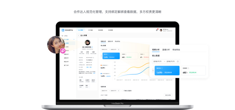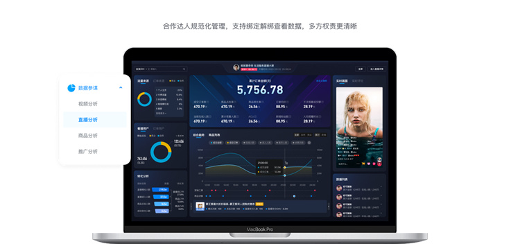 平臺聚合多個數據看板,為機構提供數據參謀,機構可在數據看板中看到商品維度、達人維度、視頻維度三大維度的匯總數據,也可以查看單一商品、達人、或視頻詳情。而且支持個性化篩選字段分析,幫助機構做好數據洞察,經營效果盡在掌握。