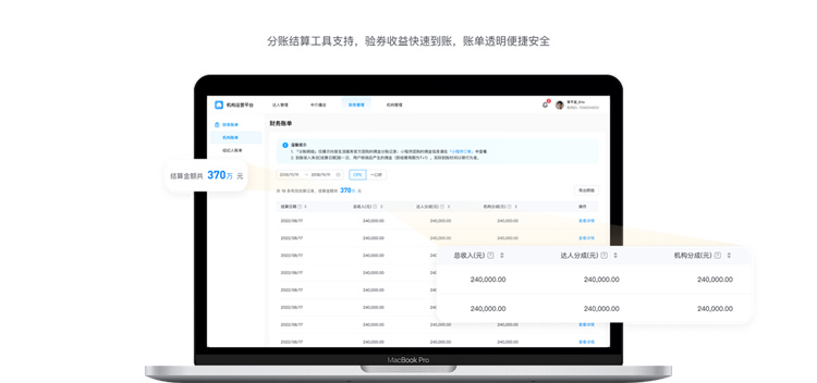 針對機構關心的利益分配問題,「集星」提供多方分賬結算工具支持,支持商家/達人/機構三方分賬,平臺可清晰展示賬單明細數據,并且能夠實現用戶到店完成團購消費驗券后,收益快速到賬,讓結算記錄有章可循。