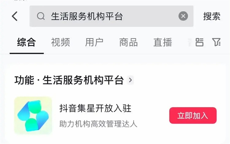 方式一:抖音App搜索“生活服務機構平臺”,完成入駐